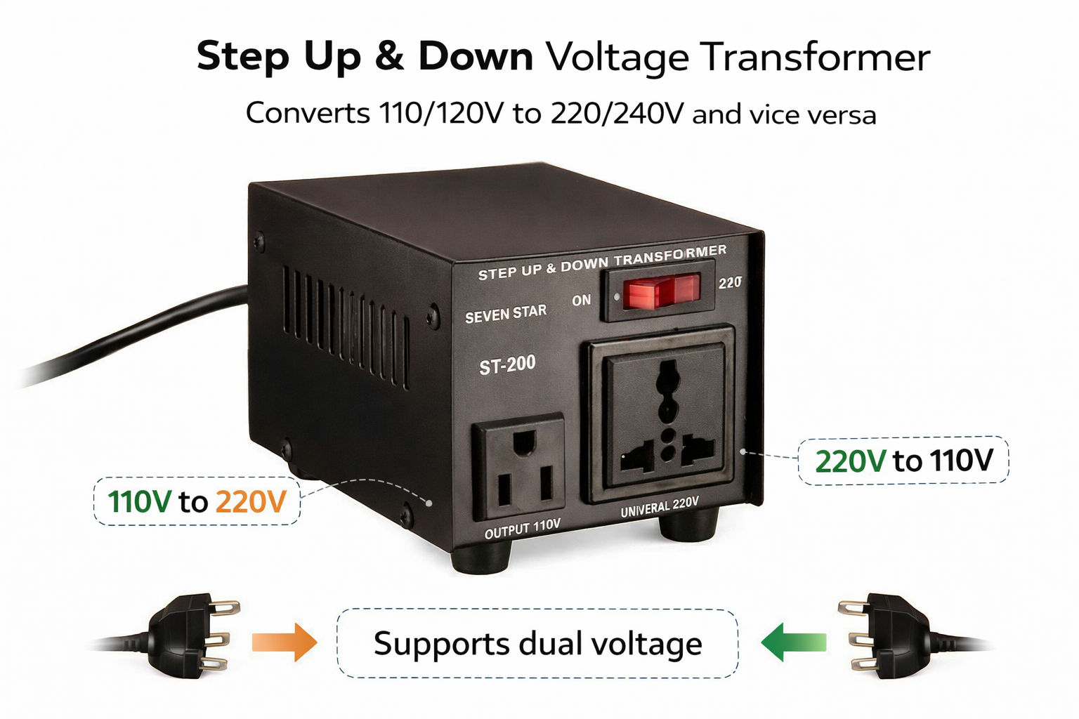 Bringing your favorite electronics abroad shouldn’t be a technical headache. The Seven Star ST-200 is a versatile 200-watt power transformer designed to bridge the gap between different international voltages. Whether you need to use a 220V European appliance in the United States or take your 110V North American gadgets to a 240V region, this “Step Up/Step Down” converter handles the heavy lifting for you.