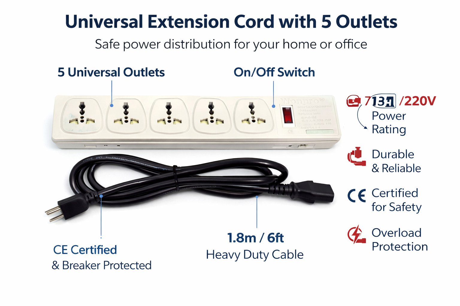 Featuring five universal outlets, this extension cord is designed to accept almost any plug type from around the world. Whether you are setting up a high-end home theater, a versatile home office, or a gaming station, the WES4 provides a stable 13A, 220V flow to keep your electronics running safely. Its compact, portable design makes it a favorite for travelers and professionals who demand reliability without the bulk. Built with high-quality, fire-resistant materials, it ensures a snug fit for every plug, eliminating the flickering power issues common with cheaper alternatives.